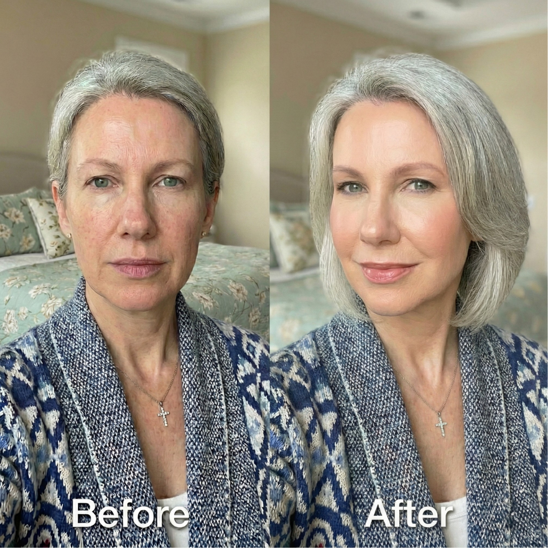 You've wasted hundreds of dollars on foundations that looked perfect in the store, then turned orange by lunchtime or settled into every line on your face. After menopause, everything got harder… your skin texture changed, your tone shifted with the seasons, and nothing matched anymore.