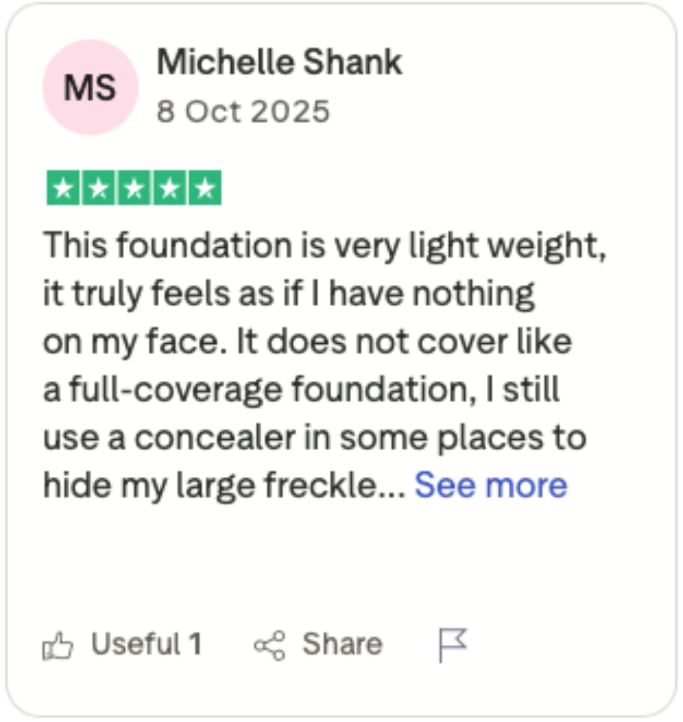 No drying. No caking. No “mask” finish.